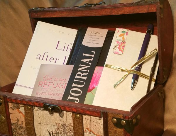 This finely crafted wooden and leather box contains the leading book on grief, a journal, pens, and an inspirational card. The recipient of this gift is encouraged to write out their special memories and keep them in the box as a life-long treasure.